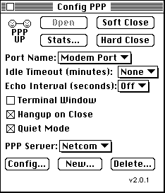 popular software packages for connecting are MacPPP and FreePPP. Mac PPP is not