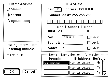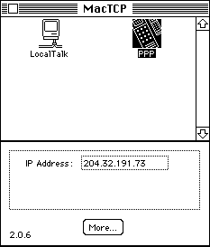 Users of MacTCP will do this via the MacTCP control panel, shown here. If you are